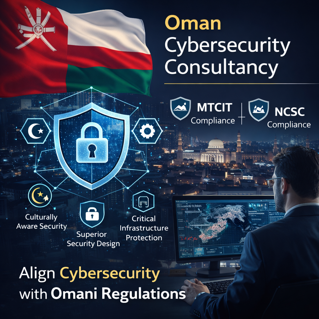 We provide tailored consultancy for the Sultanate of Oman, ensuring alignment with the Ministry of Transport, Communications and Information Technology (MTCIT) frameworks and the National Cybersecurity Centre (NCSC) standards. Compliance Wing helps Omani organizations protect their critical information infrastructure by implementing security designs that are culturally aware and technically superior, ensuring long-term stability in a rapidly evolving threat landscape.